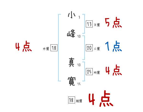 小峰真寛さんの画数の鑑定結果