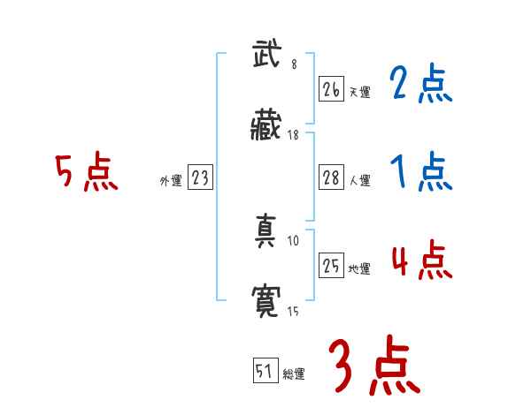 武藏真寛さんの画数の鑑定結果
