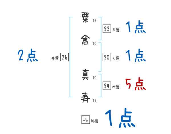 粟倉真寿さんの画数の鑑定結果