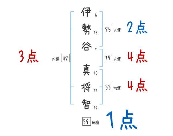 伊勢谷真将智さんの画数の鑑定結果