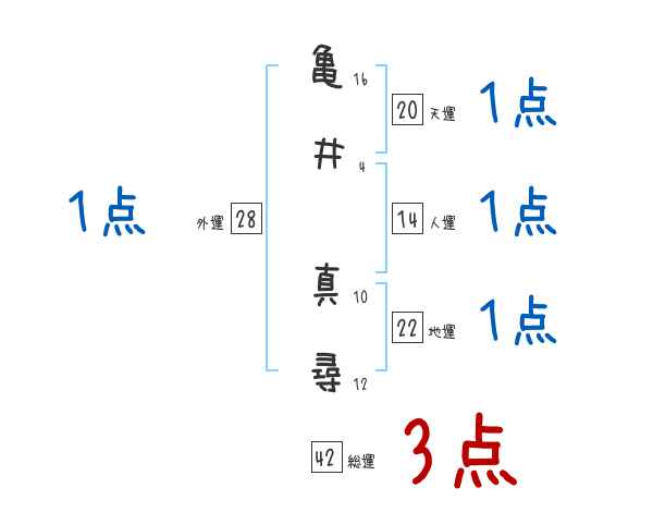 亀井真尋さんの画数の鑑定結果