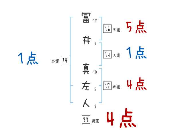 冨井真左人さんの画数の鑑定結果