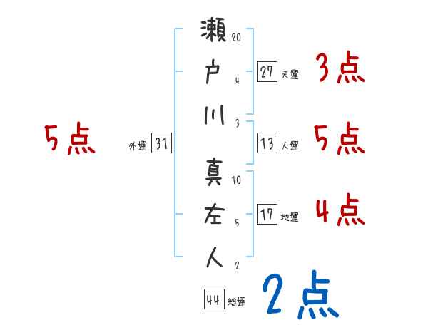 瀬戸川真左人さんの画数の鑑定結果