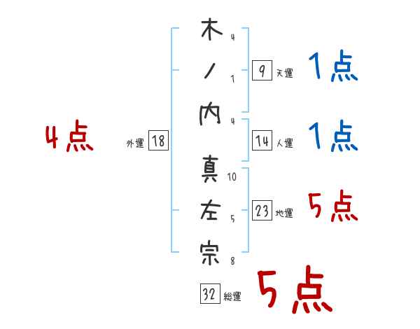 総運![]() | 木ノ内真左宗さんの総運は32画の5つ星!柔軟性があり成功する。チャンスが多く金運が良い。 あなたの人生を表す1番重要な運勢です。生涯を通じて影響する総合運となり、主に50歳以降の晩年期に影響を及ぼします。 |