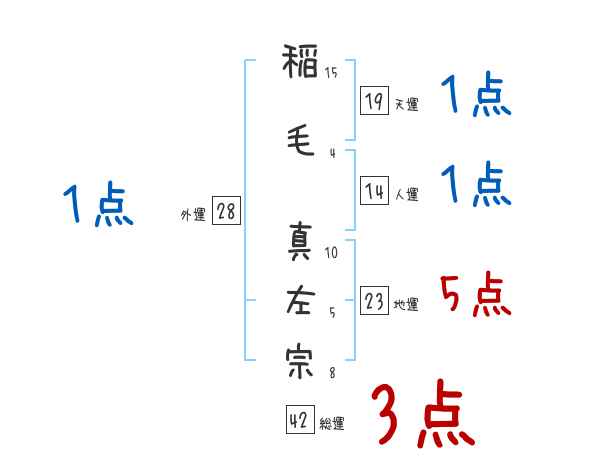 総運![]() | 稲毛真左宗さんの総運は42画の3つ星!病気に注意。多芸であるが消極的でおとなしい。 あなたの人生を表す1番重要な運勢です。生涯を通じて影響する総合運となり、主に50歳以降の晩年期に影響を及ぼします。 |