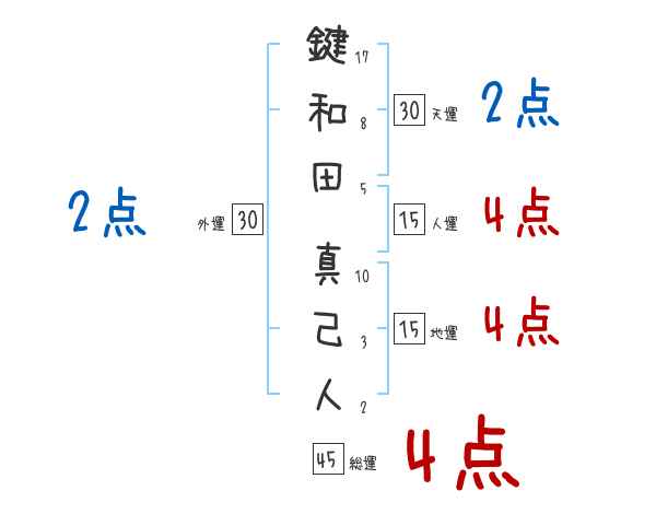 地運![]() | 鍵和田真己人さんの地運は15画の4つ星!人徳があり出世する。順調に物事を進め円満な人生。 個性を表す基礎的な運勢です。性格形成や対人関係、行動力など家庭環境に影響されます。主に誕生してから20歳くらいまでの若年期の運勢を表します。 |