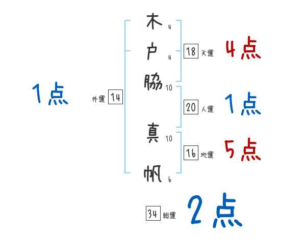 外運![]() | 木戸脇真帆さんの外運は14画の1つ星!人に対して優しいがストレスを溜め込みがち。人間関係のトラブルを避けるよう気をつけましょう。 生活面を象徴する運勢です。外部から受ける影響力を表し、結婚運、家庭運や職場、環境への順応性を表します。 |