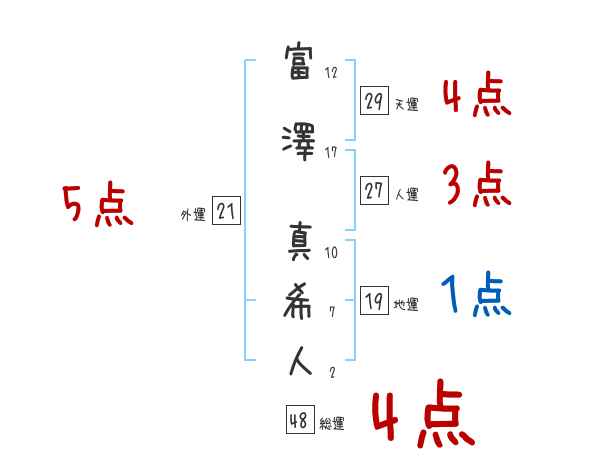 富澤真希人さんの画数の鑑定結果