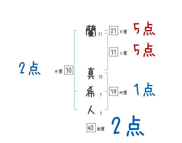 蘭真希人さんの画数の鑑定結果