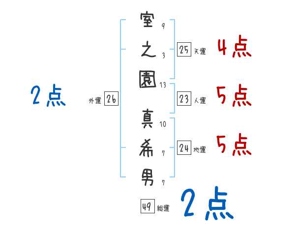 室之園真希男さんの画数の鑑定結果