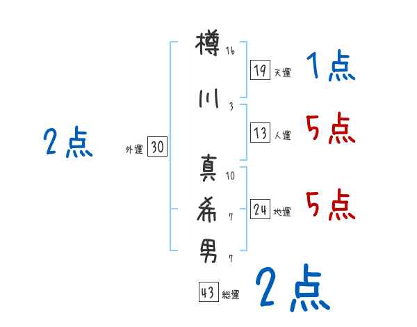 樽川真希男さんの画数の鑑定結果