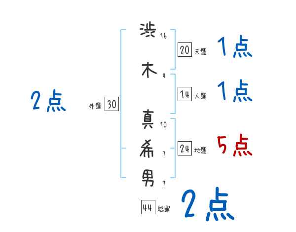 外運![]() | 渋木真希男さんの外運は30画の2つ星!浮き沈みの激しさに注意しましょう。 生活面を象徴する運勢です。外部から受ける影響力を表し、結婚運、家庭運や職場、環境への順応性を表します。 |