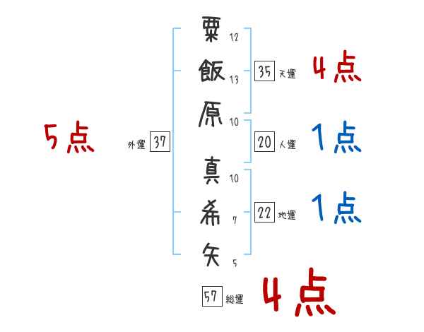 粟飯原真希矢さんの画数の鑑定結果
