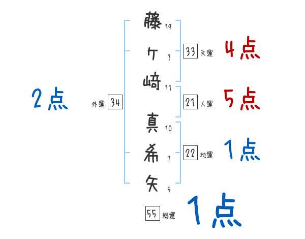 藤ヶ﨑真希矢さんの総運は55画の1つ星