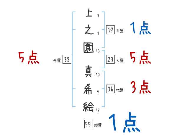 上之園真希絵さんの画数の鑑定結果