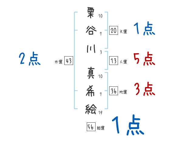 栗谷川真希絵さんの画数の鑑定結果