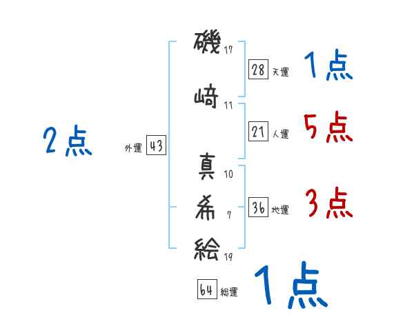 磯﨑真希絵さんの画数の鑑定結果