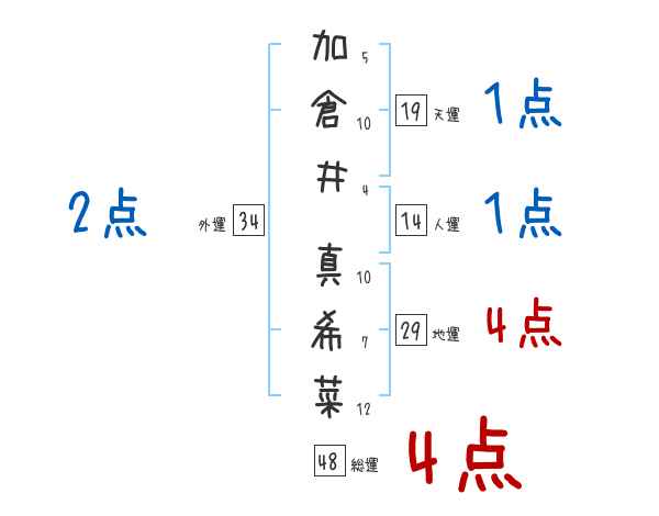 加倉井真希菜さんの画数の鑑定結果