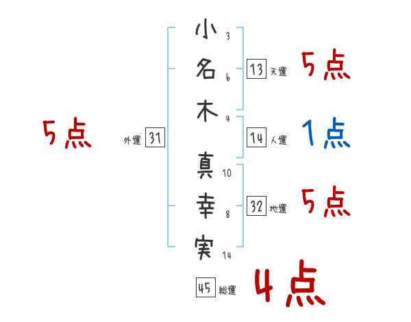 小名木真幸実さんの画数の鑑定結果