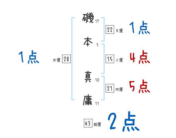磯本真庸さんの画数の鑑定結果