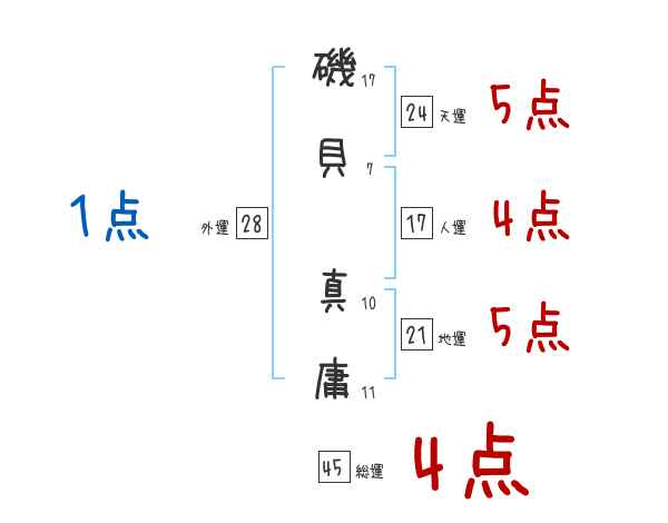 磯貝真庸さんの画数の鑑定結果