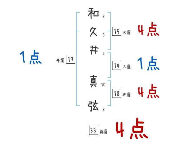 和久井真弦さんの画数の鑑定結果