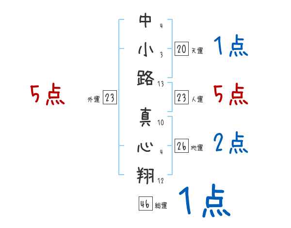 中小路真心翔さんの画数の鑑定結果