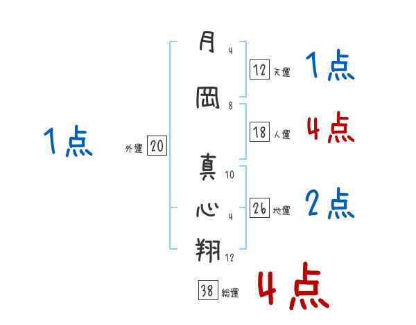 月岡真心翔さんの画数の鑑定結果