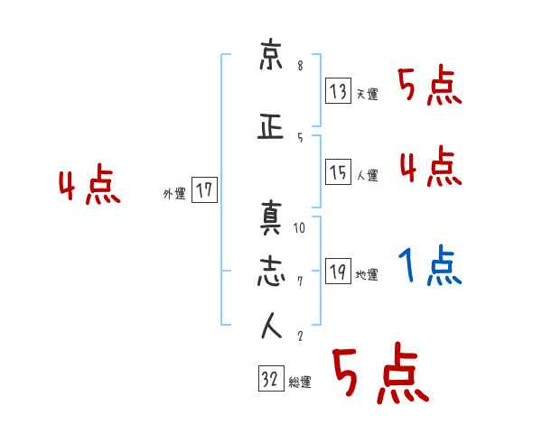京正真志人さんの画数の鑑定結果
