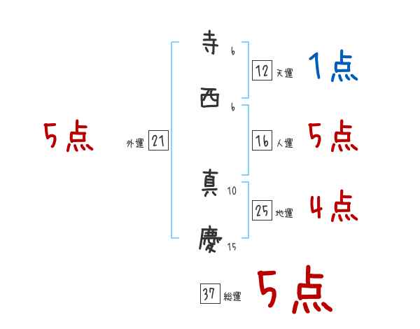 寺西真慶さんの画数の鑑定結果