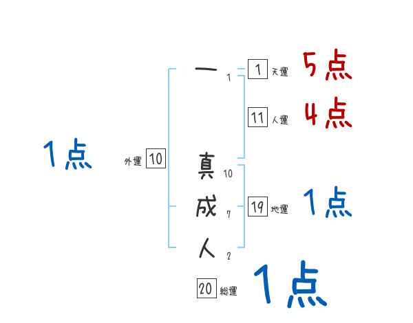 天運![]() | 一真成人さんの天運は1画の5つ星!行動力、指導力があり出世し繁栄する。幸運に恵まれる。 家系が持つ宿命的な運勢を表します。祖先から受け継いだ苗字ですので自分の力が及びません。家柄を象徴します。 |