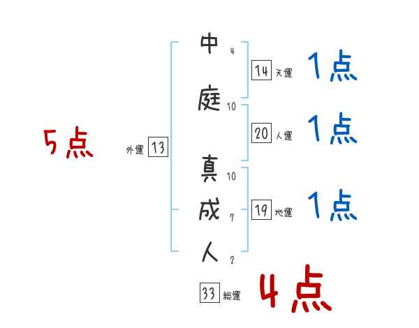 中庭真成人さんの画数の鑑定結果