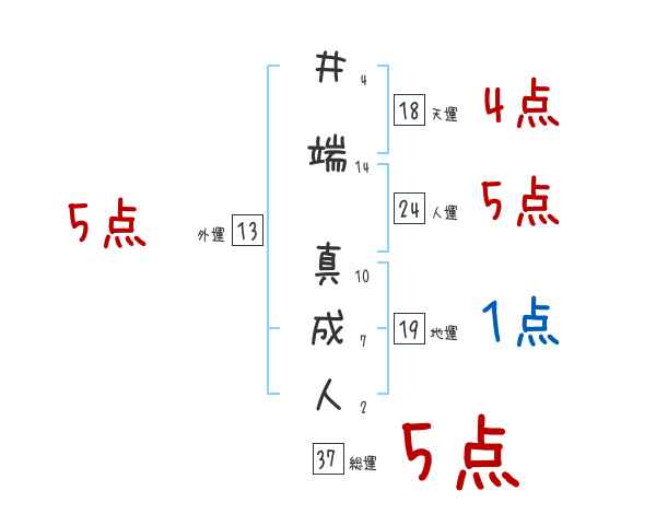 井端真成人さんの画数の鑑定結果
