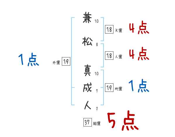 兼松真成人さんの画数の鑑定結果