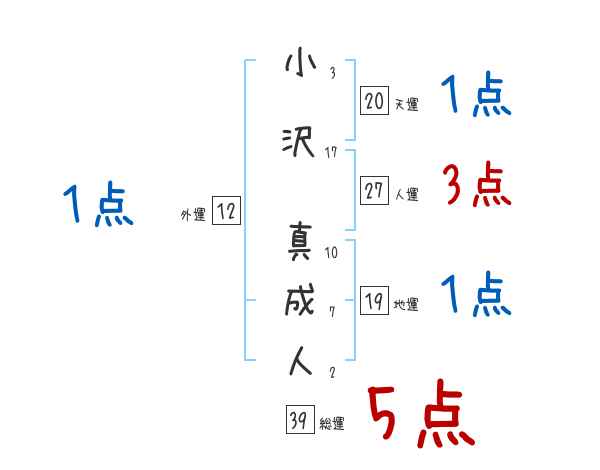 小沢真成人さんの画数の鑑定結果