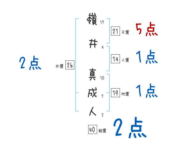 嶺井真成人さんの画数の鑑定結果