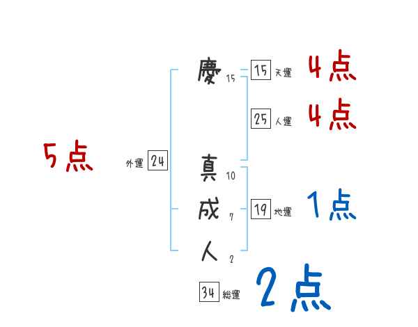 慶真成人さんの画数の鑑定結果
