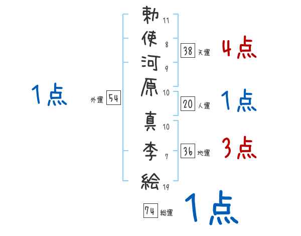 勅使河原真李絵さんの画数の鑑定結果
