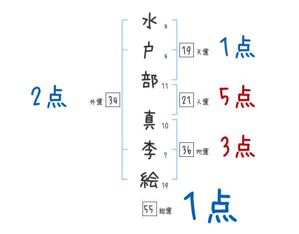 水戸部真李絵さんの画数の鑑定結果