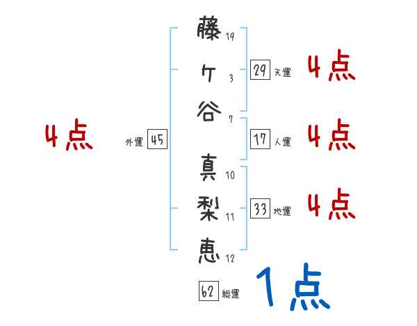 藤ヶ谷真梨恵さんの画数の鑑定結果