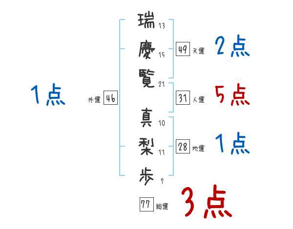 瑞慶覧真梨歩さんの画数の鑑定結果
