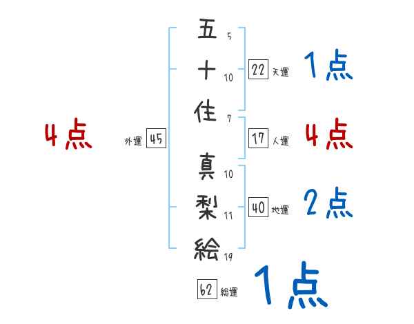 五十住真梨絵さんの画数の鑑定結果