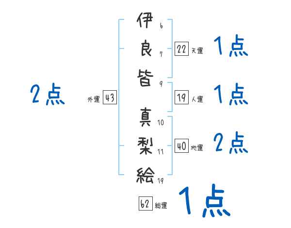 伊良皆真梨絵さんの画数の鑑定結果