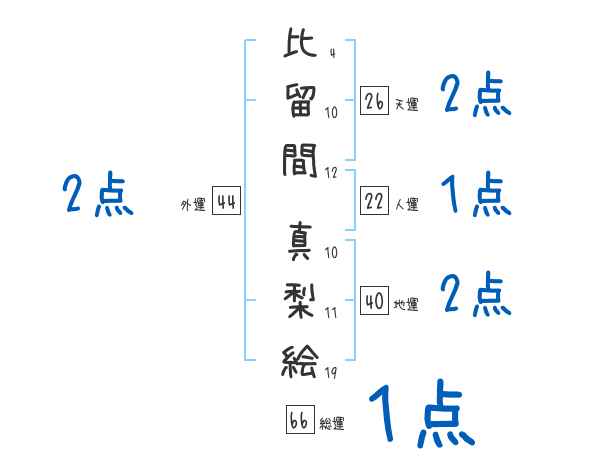 比留間真梨絵さんの画数の鑑定結果