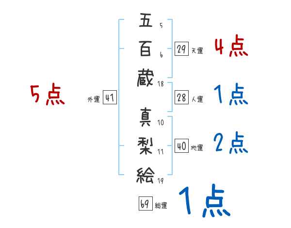天運![]() | 五百蔵真梨絵さんの天運は29画の4つ星!完全主義で才能がある。厳格な心の持ち主。 家系が持つ宿命的な運勢を表します。祖先から受け継いだ苗字ですので自分の力が及びません。家柄を象徴します。 |