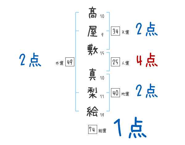 髙屋敷真梨絵さんの画数の鑑定結果