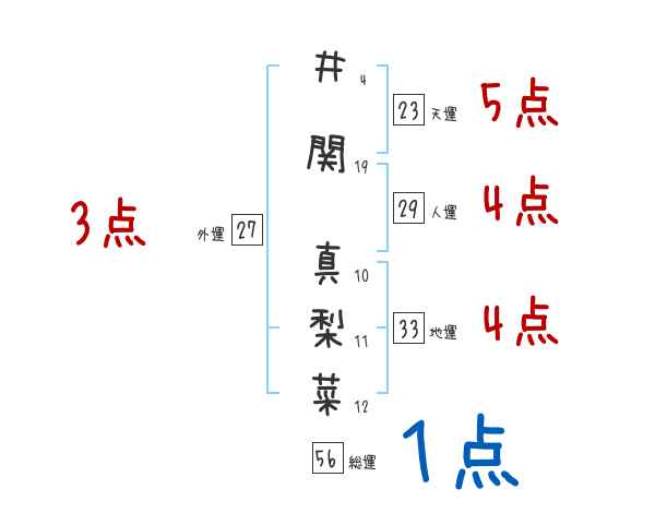 井関真梨菜さんの画数の鑑定結果
