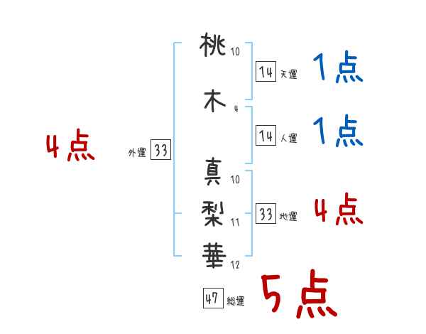 桃木真梨華さんの画数の鑑定結果
