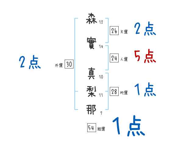 森實真梨那さんの画数の鑑定結果