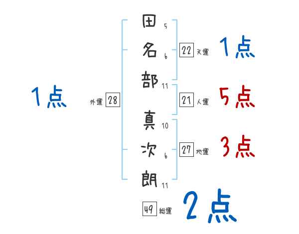 外運![]() | 田名部真次朗さんの外運は28画の1つ星!家庭環境に注意。スポーツで活躍できる能力があるかも。 生活面を象徴する運勢です。外部から受ける影響力を表し、結婚運、家庭運や職場、環境への順応性を表します。 |